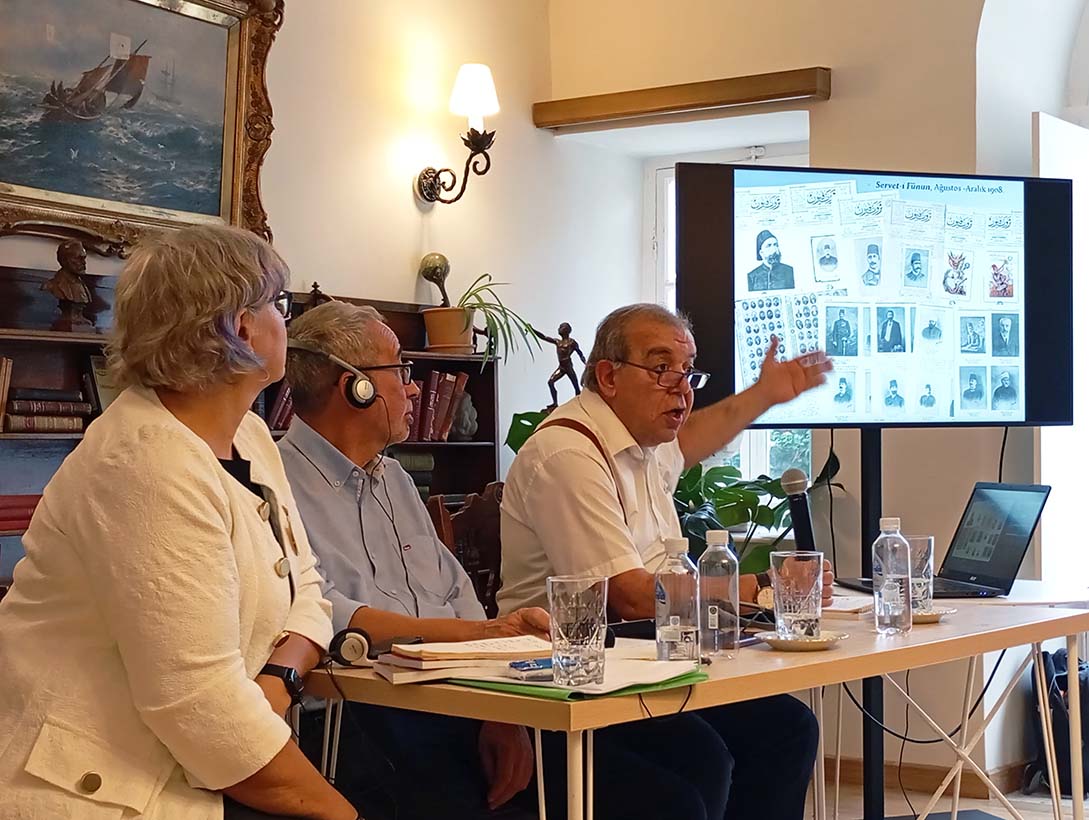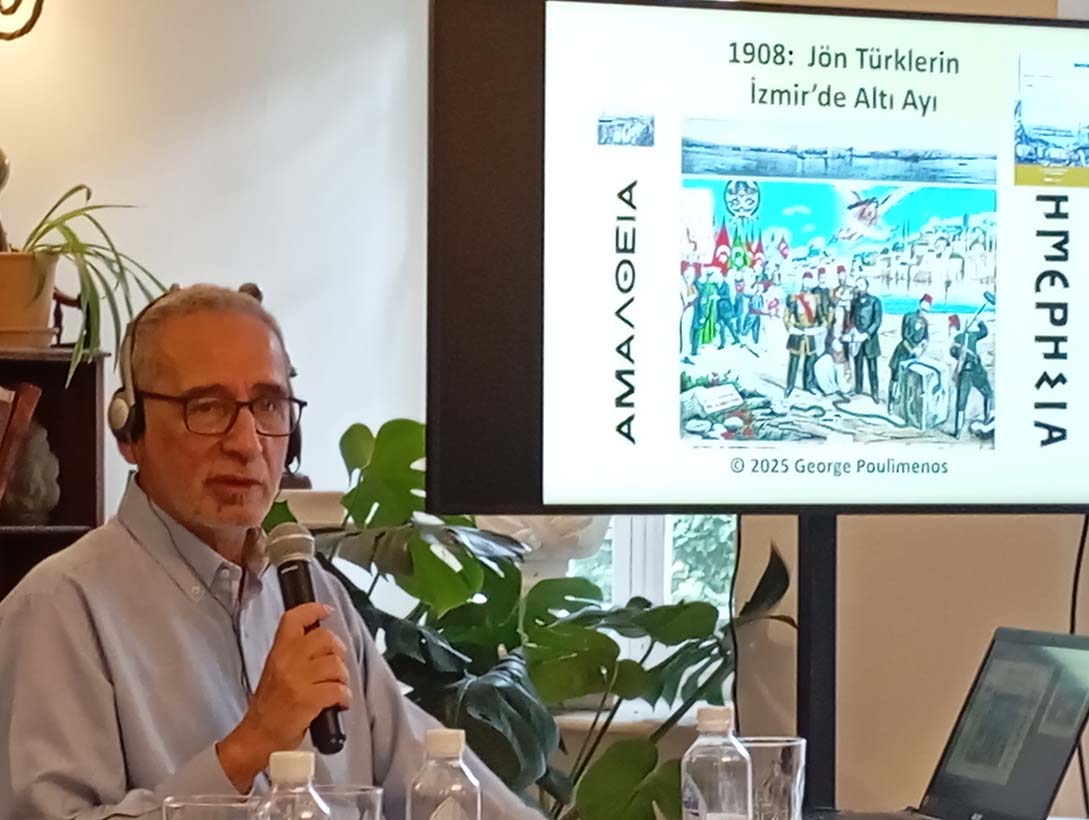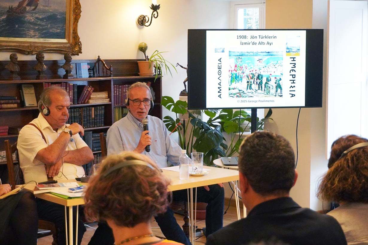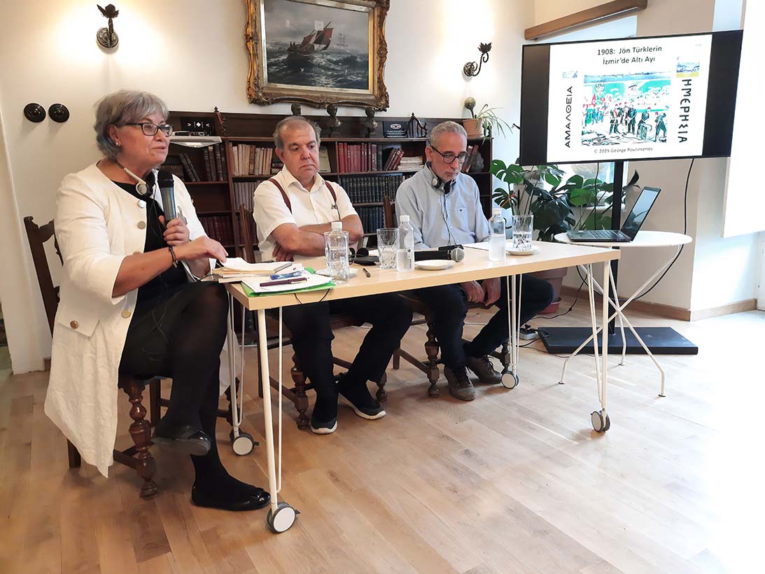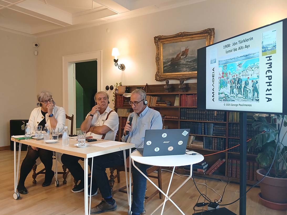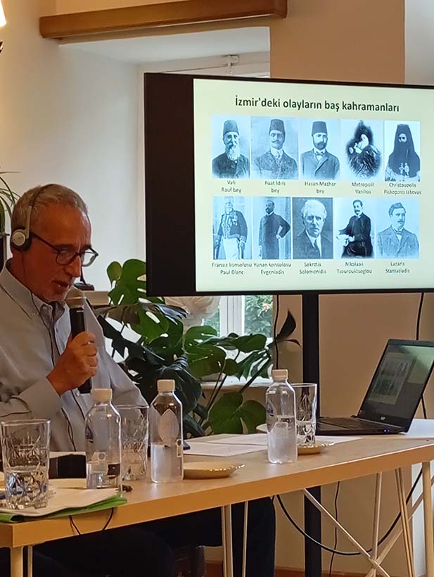Ένα χρόνο αργότερα, ο φίλος καθηγητής του Τμήματος Τουρκικών και Σύγχρονων Ασιατικών Σπουδών του ΕΚΠΑ Hervé Georgelin με προσκάλεσε να συμμετάσχω σ’ ένα διεθνές συνέδριο που διοργάνωνε το τμήμα του σε συνεργασία με τη Σχολή Οικονομικών και Πολιτικών Επιστημών. Μου έδωσε έτσι την ευκαιρία να θέσω σε εφαρμογή την ιδέα μου και να καταπιαστώ μ’ εκείνο το συνταρακτικό εξάμηνο στη Σμύρνη, ένα διάστημα μεγάλου ενθουσιασμού, συμφιλίωσης μεταξύ των εθνικών κοινοτήτων και άκρατης ελευθερίας, που δυστυχώς δεν συνεχίστηκε για πολύ. Δέχθηκα λοιπόν την πρόσκληση και υπέβαλα πρόταση για μια ομιλία με τίτλο «Η Σμύρνη το 1908», η οποία έγινε δεκτή. Εντέλει η εργασία μου, που μου πήρε 3 μήνες για να την ολοκληρώσω, βγήκε κάπως μεγαλύτερη απ’ ό,τι περίμενα, γύρω στις 180 σελίδες A4. Έτσι, η ομιλία που έκανα στις 11 Μαΐου 2023 ήταν μια περίληψη της πλήρους εργασίας μου, η οποία εκδόθηκε σε βιβλίο την άνοιξη του 2025 από τις Εκδόσεις Ηρόδοτος.